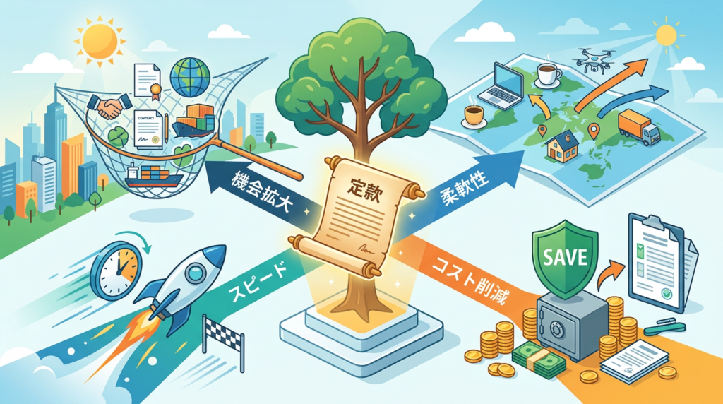 その際、あらかじめ定款に関連する事業目的が記載されていれば、新たなビジネスチャンスを逃すことなく、迅速に事業をスタートできます。