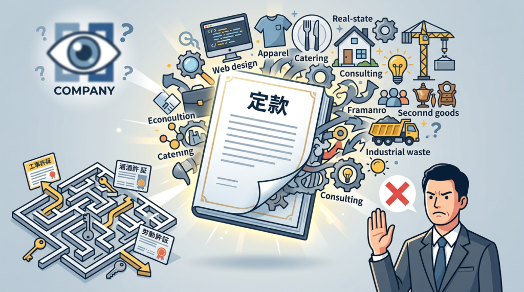 もし記載がなかったり、表現が曖昧だったりすると、許認可の申請が受理されなかったり、定款の目的変更手続きを求められたりして、事業開始が遅れてしまいます。