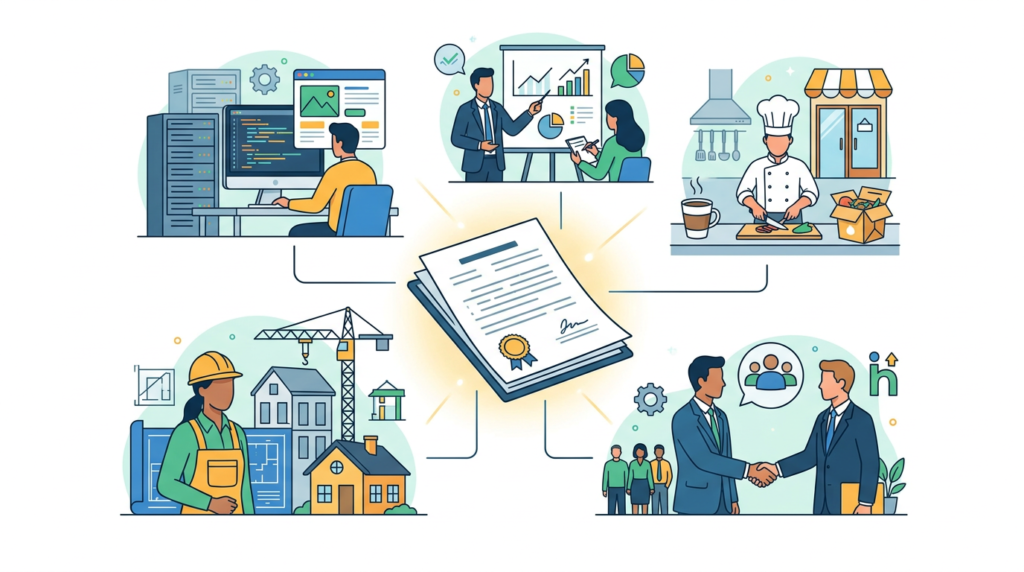 建設業、飲食業、人材派遣業、古物商など、事業を行うために国や都道府県の許認可が必要な業種があります。