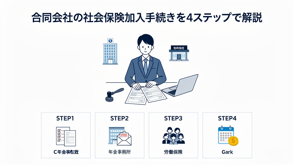 ここでは、合同会社設立後の社会保険加入手続きを、誰にでも分かりやすく4つのステップで具体的に解説します。